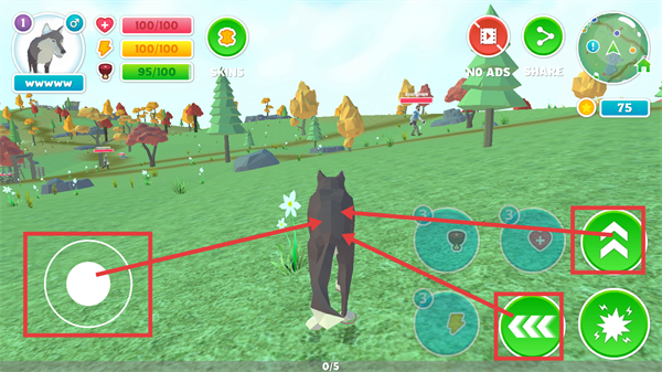 2、通过左侧摇杆和右侧【移动-动作】按钮操控角色,熟悉操作后可在场景中自由探索。