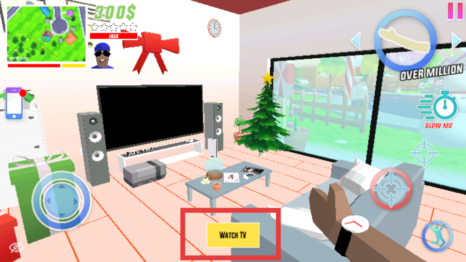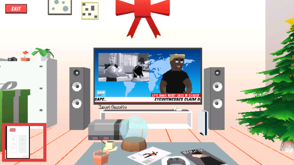 2、进入游戏后,可在场景中与互动元素交互,如点击按钮观看电视。