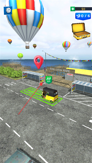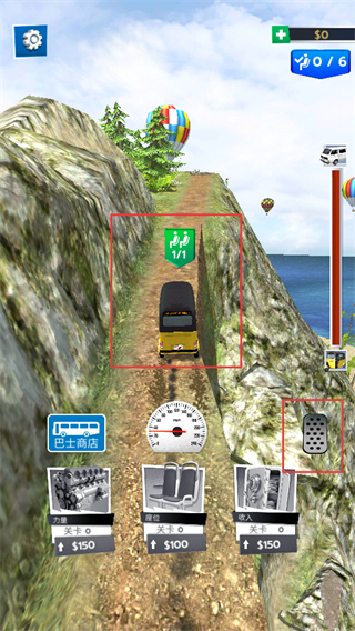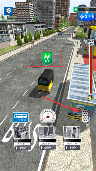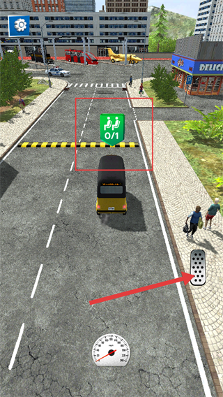 1、游戏中需完成乘客运输任务,关注【0/1】的乘客标识,利用右侧加速踏板控制车辆行驶,前往乘客所在位置接人。
