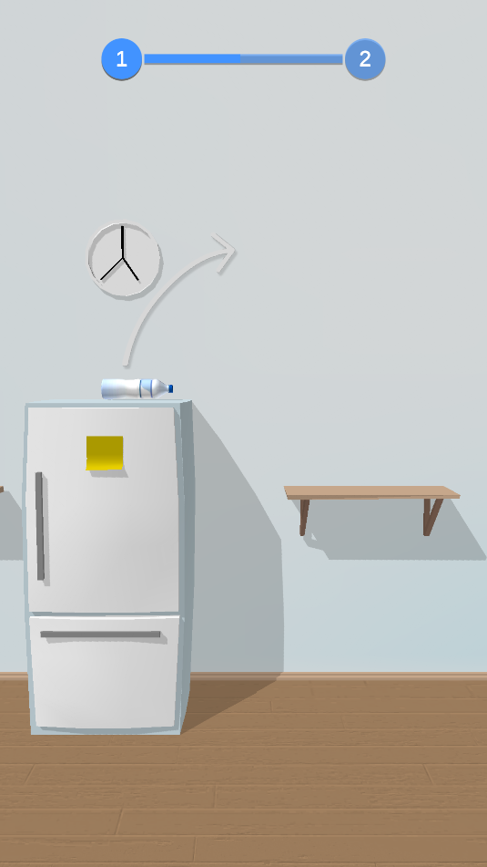 1、以瓶子翻转跳跃为核心玩法,操作聚焦力度与角度控制,无冗余设计,核心体验纯粹直接。