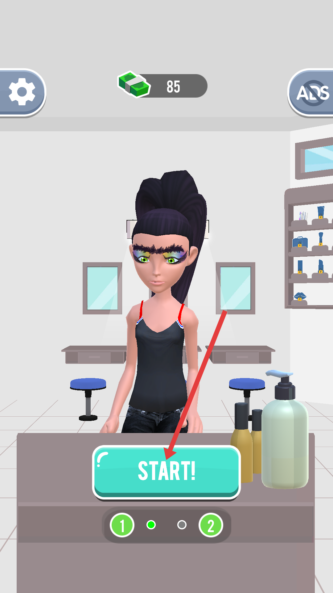 1、进入界面后,点击【START!】按钮开始美妆改造流程,可留意上方货币数量,记录美妆服务收益。