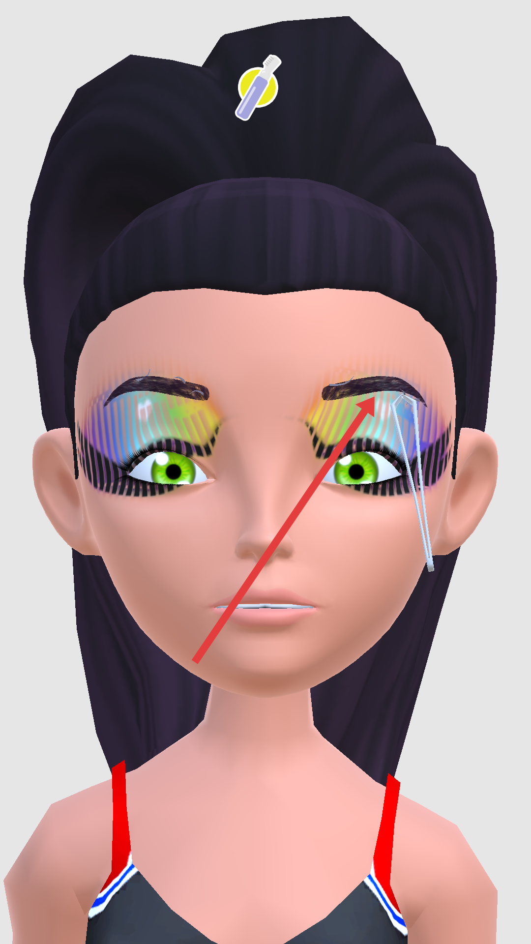 3、继续依据箭头指示,用工具对眉毛进行精细调整,打造出整洁美观的眉形。