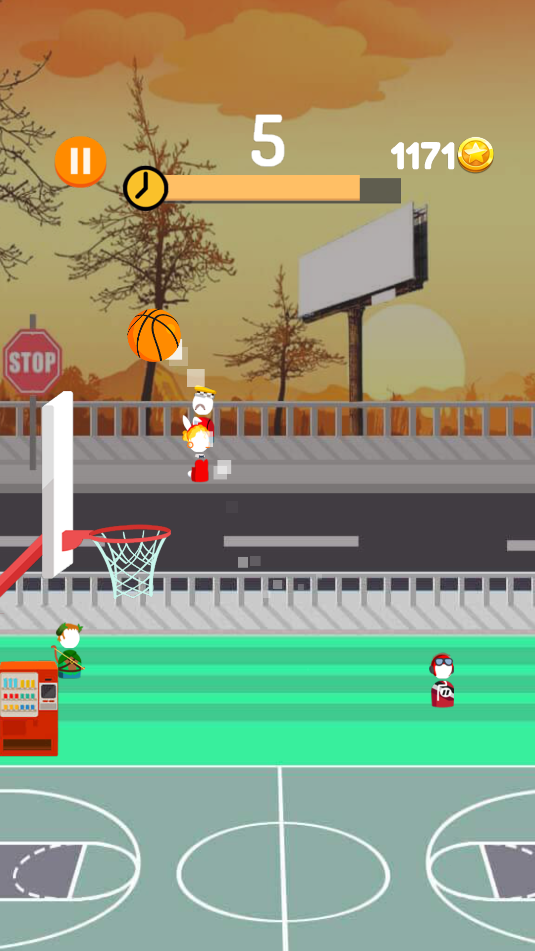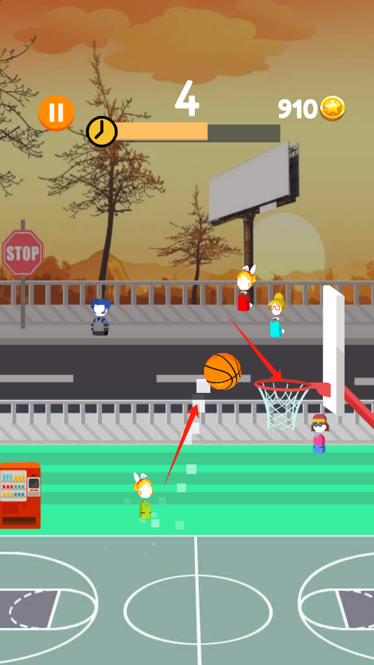 3、每进一次球,篮筐会一左一右的出现,篮球也会变换方向的跳跃,进篮的球越多次,分数就越高。