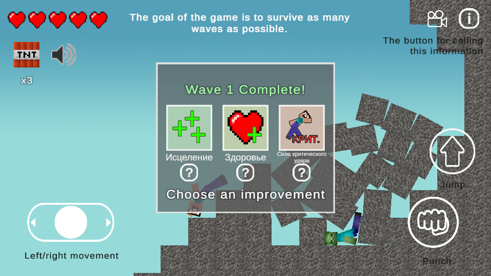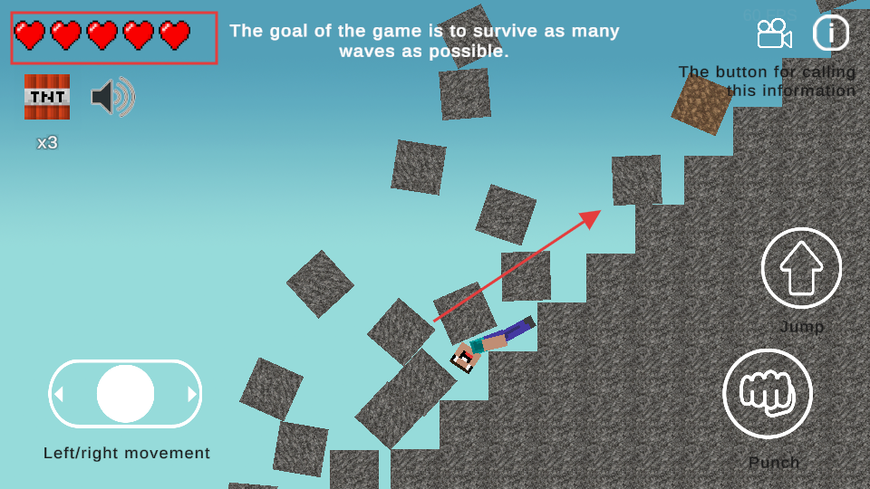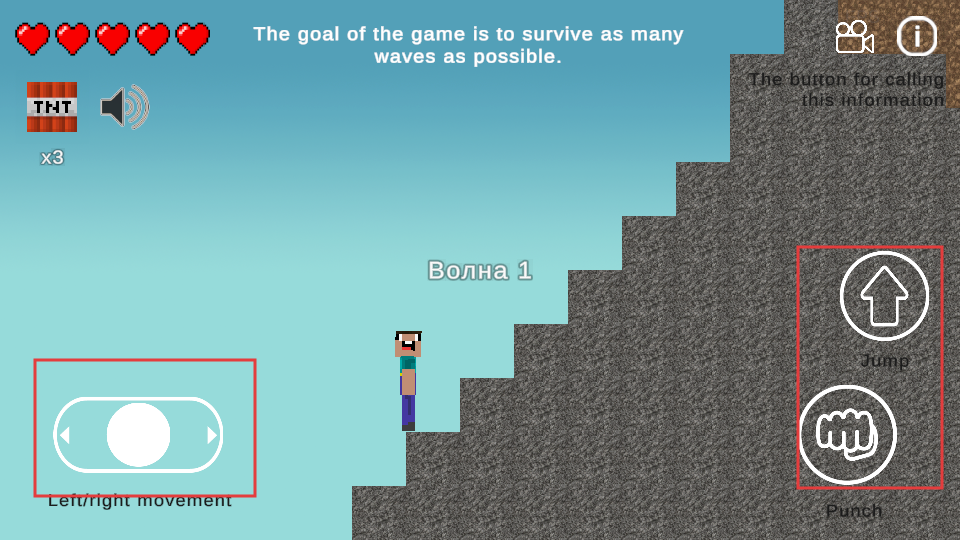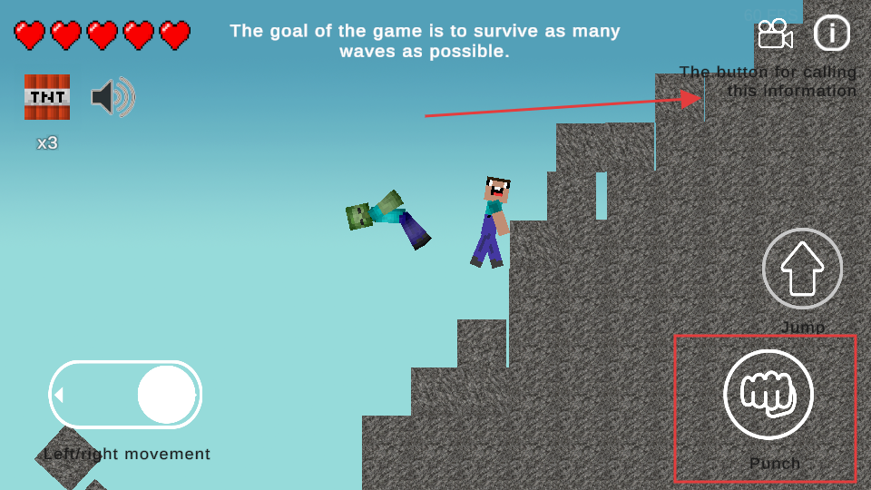 1、熟悉操作界面,利用左侧按钮控制移动,右侧按钮分别用于跳跃和攻击,明确游戏目标是尽可能多生存波次。