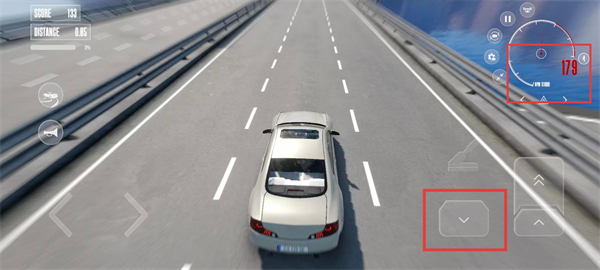 4、驾驶过程中,右上角的仪表盘显示车辆速度等信息,右侧的减速按钮可在需要时降低车速,避免超速。