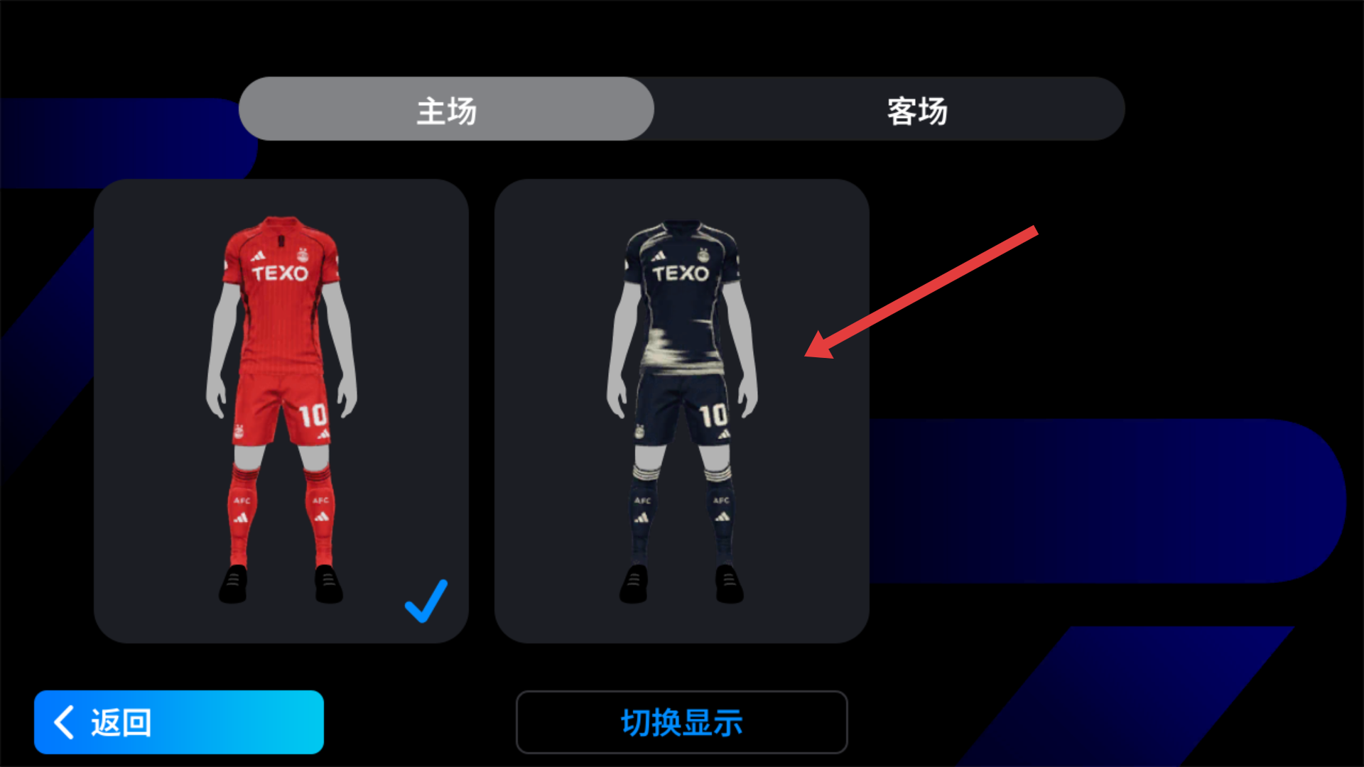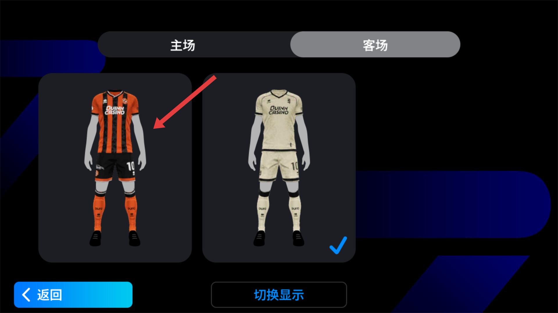1、在个性球衣设置中,可从已拥有球衣里为客场球队选择球衣,点击对应球衣即可切换呢。