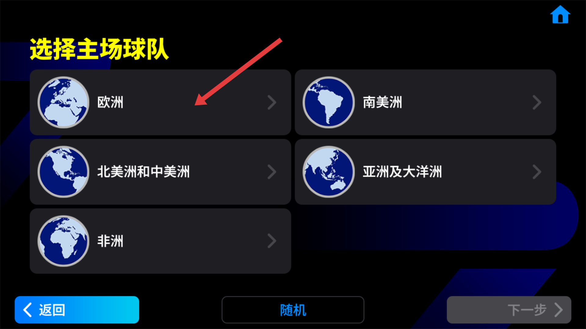 1、进入比赛选择界面后,先选【欧洲】赛区,该赛区涵盖众多顶级联赛。