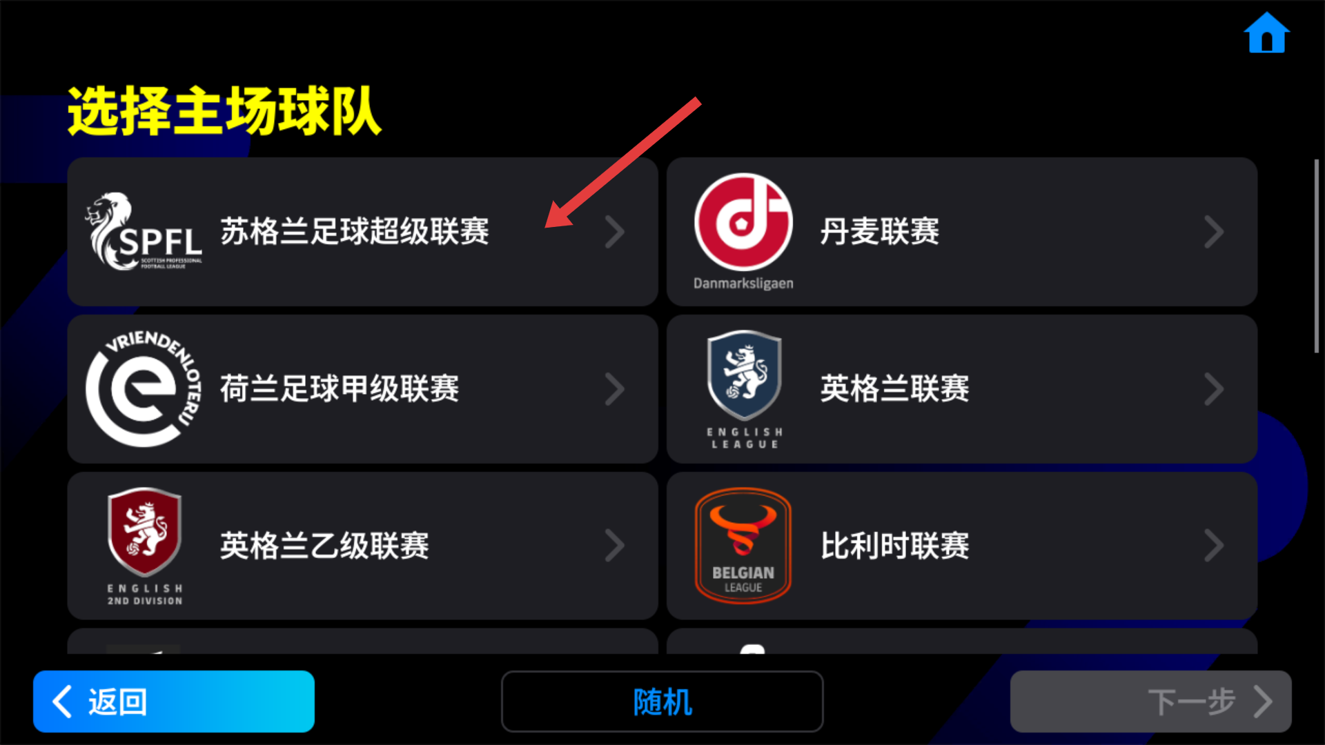 2、在欧洲赛区中选择【苏格兰足球超级联赛】,该联赛球队风格鲜明,可根据喜好挑选球队开启比赛。