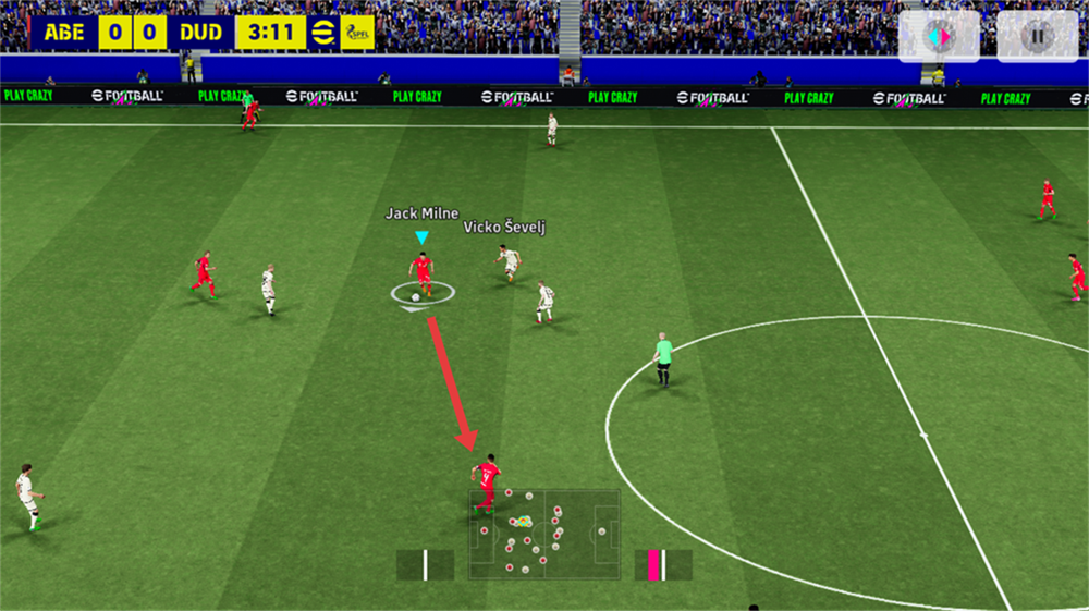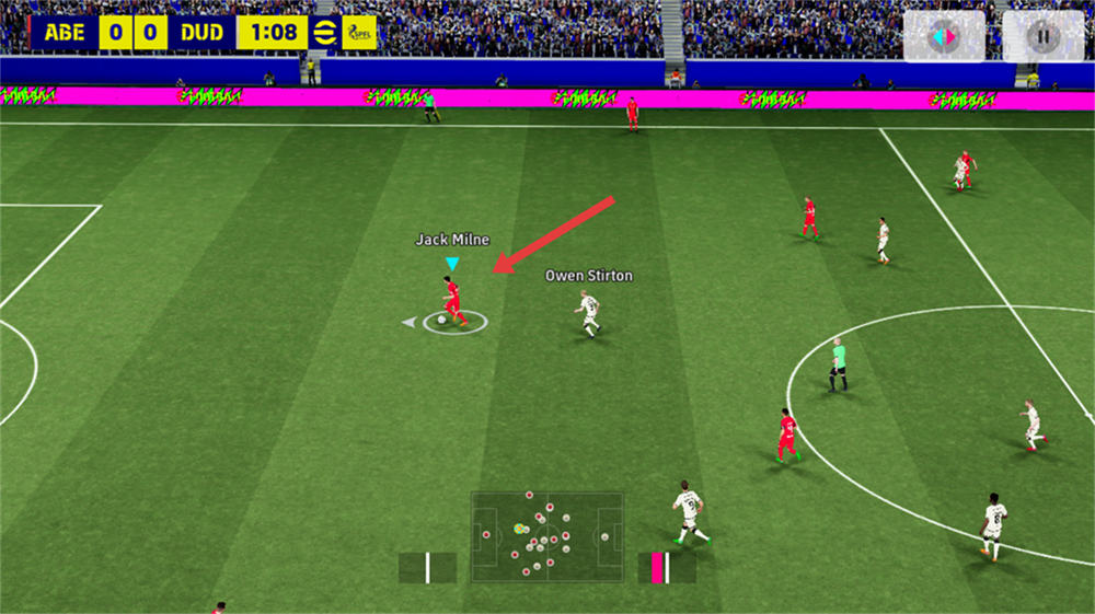 3、比赛中操控球员Jack-Milne时,需灵活带球,寻找传球或突破的机会。