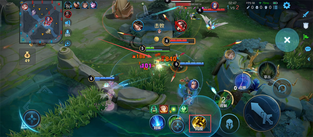 1、自身状态不佳被敌方追击时,果断用【闪现】过墙,能迅速脱离危险,保住小命继续战斗哦。