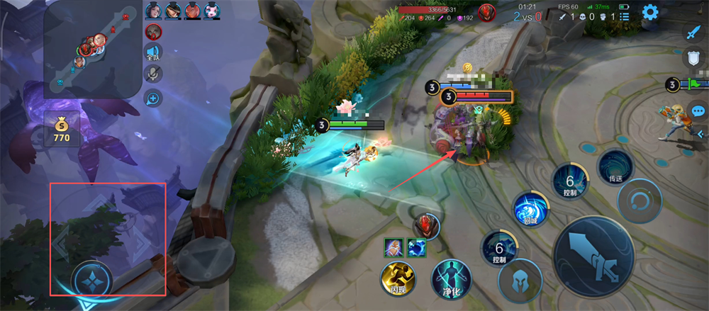 1、面对白起这类敌方英雄,需利用左侧移动摇杆控制身位距离,避免被其技能近身,保障自身生存空间。