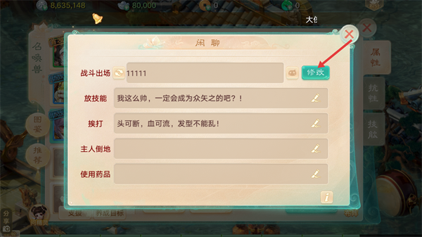3、在闲聊界面,点击战斗出场后的编辑按钮。