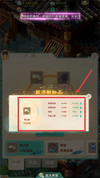 3、消耗相应资源,点击升级按钮,打造全新的装备。
