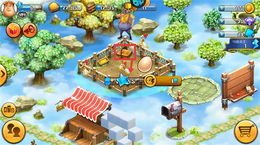 4、当鸡舍产出鸡蛋后,及时收集鸡蛋,既能获得资源又能推进庄园发展,让咱们的庄园越发繁荣哦。