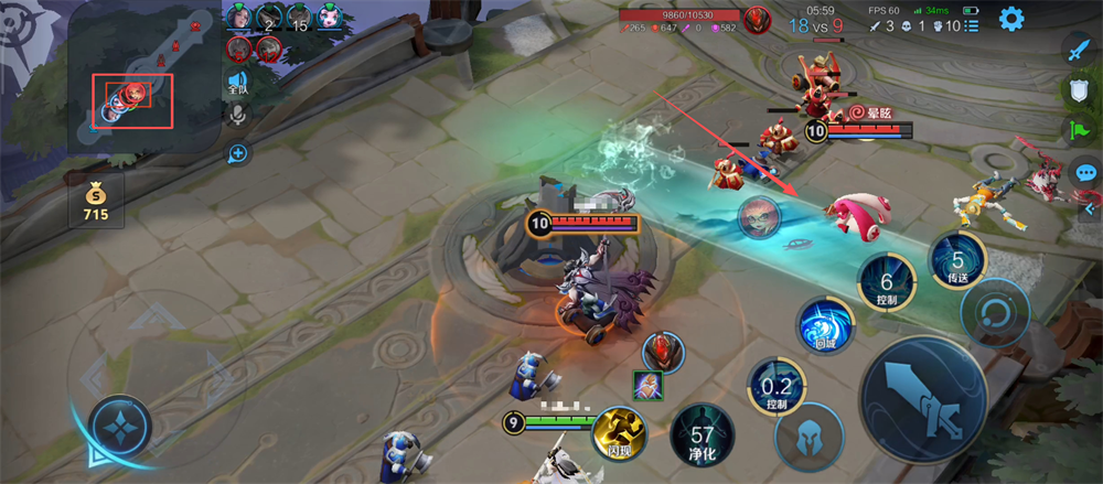 1、清兵时拖动三技能转向,覆盖所有兵线,提升清线效率,为支援争取时间呀。