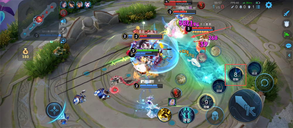 4、若敌人追击我方残血队友,要及时使用控制技能留人,保护队友并反打取胜吧。