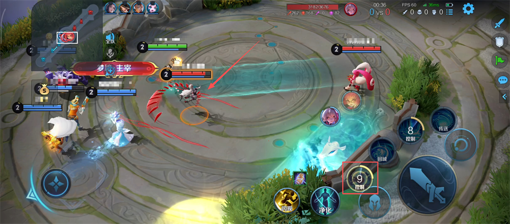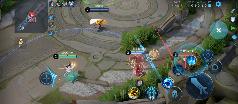 2、敌人近身时,果断点击【控制】技能,打出沉默加击退效果,能有效限制敌人输出呢。