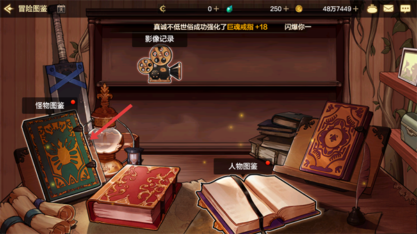 1、在游戏界面在【冒险】页,点击【图鉴】,进入冒险图鉴界面。