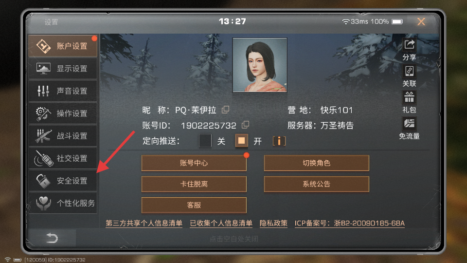 2、选择【安全设置】,进入安全锁设置页面。