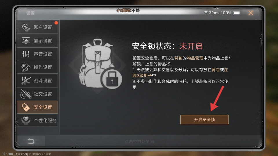 3、在安全锁设置页面,点击【开启安全锁】,进入密码设置环节。