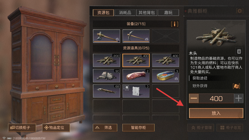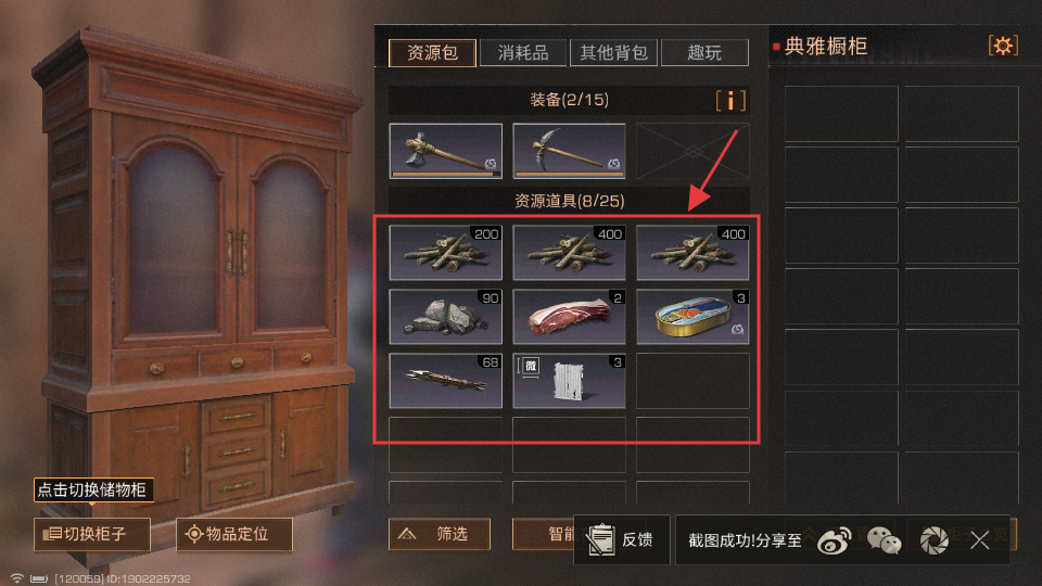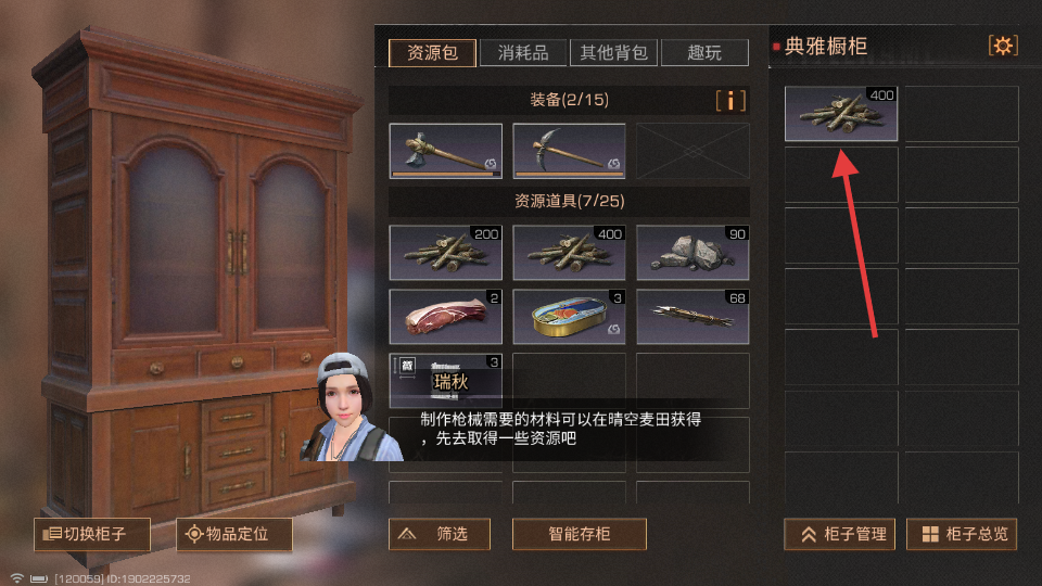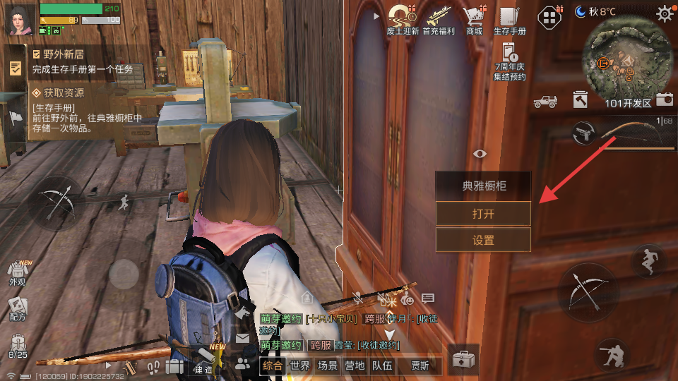 1、在家园中,靠近储物柜,点击【打开】,进入存储界面。