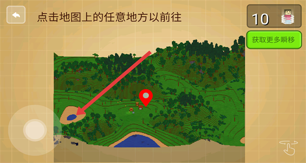 4、传送完成后,可通过左侧虚拟摇杆控制角色在新地点移动探索。