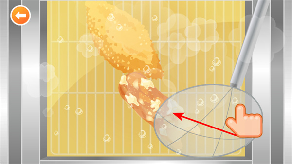 2、在炸制环节,点击裹好面包糠的食材,将其放入油锅中,这是制作炸物的关键步骤,准确操作才能开始食材的炸制过程。
