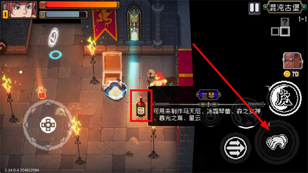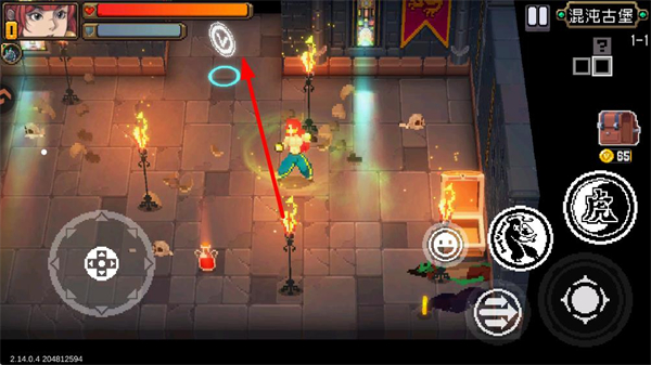 3、探索关卡时留意宝箱和道具,看到可互动物品时点击右侧手掌按钮拾取,这些道具和装备能提升角色属性,助力后续战斗。