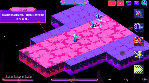 1、拖动屏幕移动法师,用第二根手指瞄准,攻击敌人。