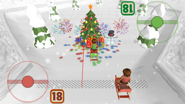 4、最终抵达装饰着圣诞树、礼物和烟花的终点区域,完成比赛,享受派对氛围。