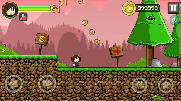 2、移动角色收集金币,沿着箭头指向的路径前进,积累财富和分数。