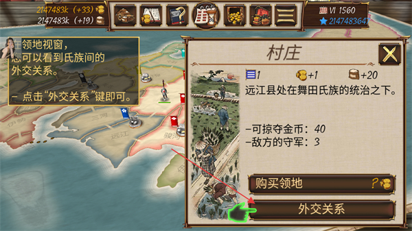 2、点击外交关系,可查看氏族间的外交状态,如远江县处于舞田氏族统治之下。