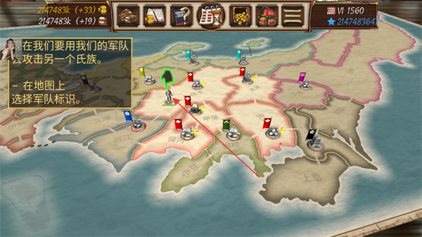 4、在地图上选择军队标识,指挥军队攻击另一个氏族,扩张领土。
