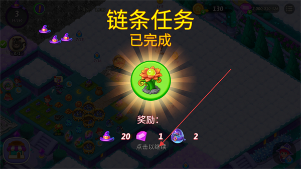 3、继续合并绽放的月亮花,升级后获取更高级资源,完成链条任务。