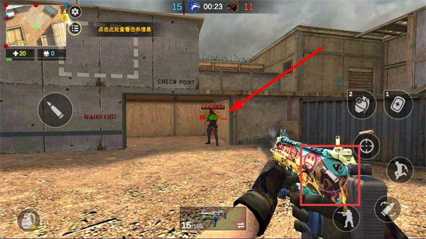 2、发现敌人后瞄准目标,点击射击按钮开火,需把握好射击节奏和准度,尽可能快速淘汰敌人,积累对战优势。