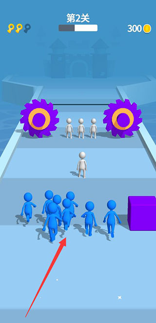 该游戏的核心玩法类似之前一段时间比较火的也是这种风格的靠人数战斗的游戏,每关都需要在路上拉拢小人,尽量躲避地图的障碍物,保持足够的人数在最后地点跟敌人决一死战(还会有一些奖励关),除了boss和自己会有额外属性加成外,其他小人对战都是一换一(有武器的例外),主要是考验走位,阵型不能调整就很烦人,一些特殊地形设定的就很神奇,你上一秒刚拉拢的一排人,下一秒就来个左右2边都是墙的障碍物,只能硬闯,普通关还好,boss关就非常容易因为人数不够团灭,希望可以加个调整阵型的机制,我的HXD不能就这样随便牺牲啊!
