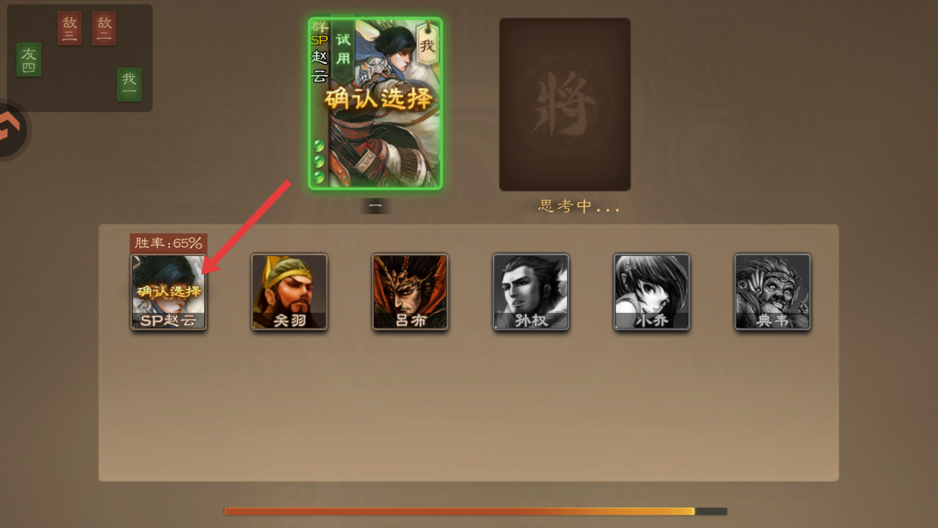 2、在选将阶段,我们可以优先选择【SP赵云】,其技能强势,能为我们的对局助力呢。