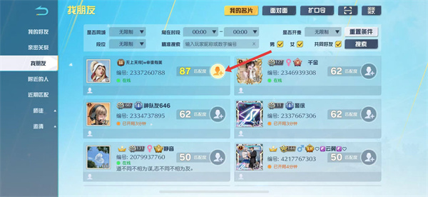 2、选择【找朋友】选项,可筛选玩家寻找合适的游戏伙伴。