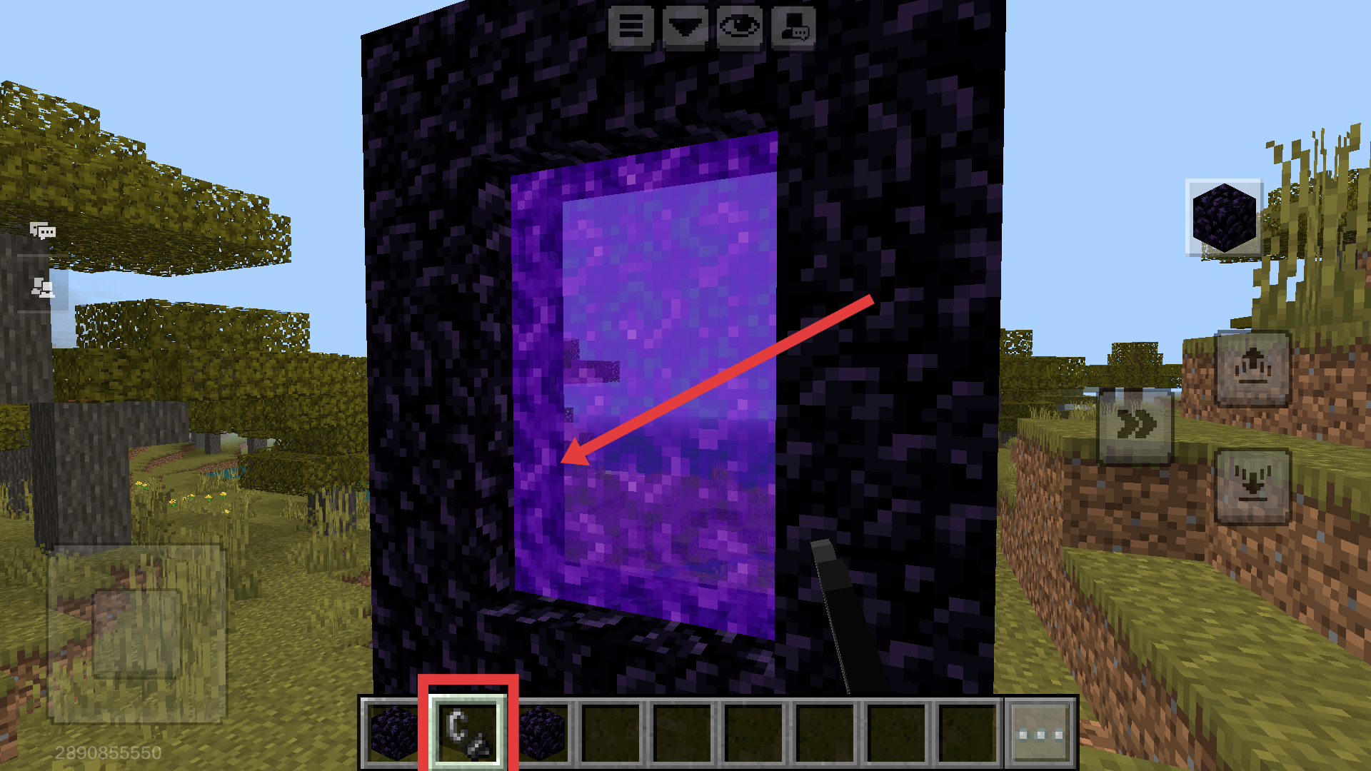 4、最后拿出打火石,对着黑曜石框架内部点击,就能激活地狱门,紫色传送门出现后就可以进入地狱探险啦。