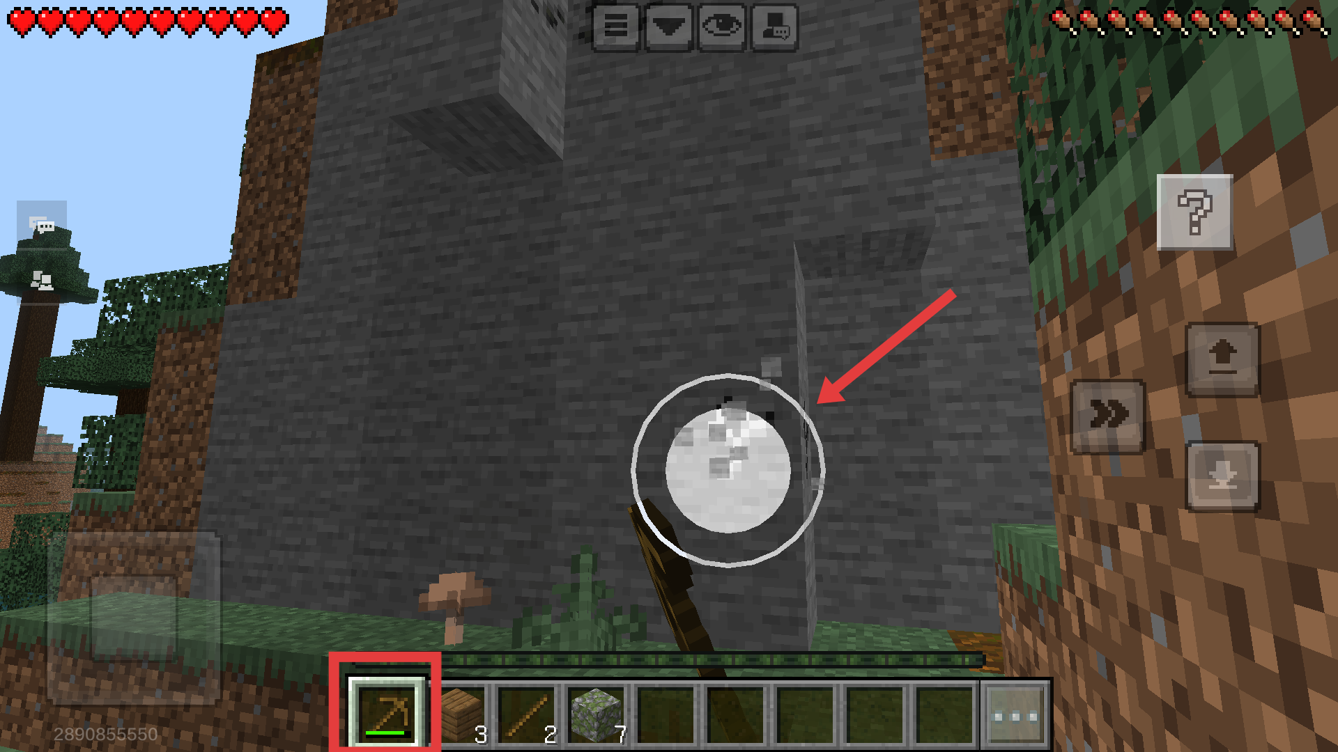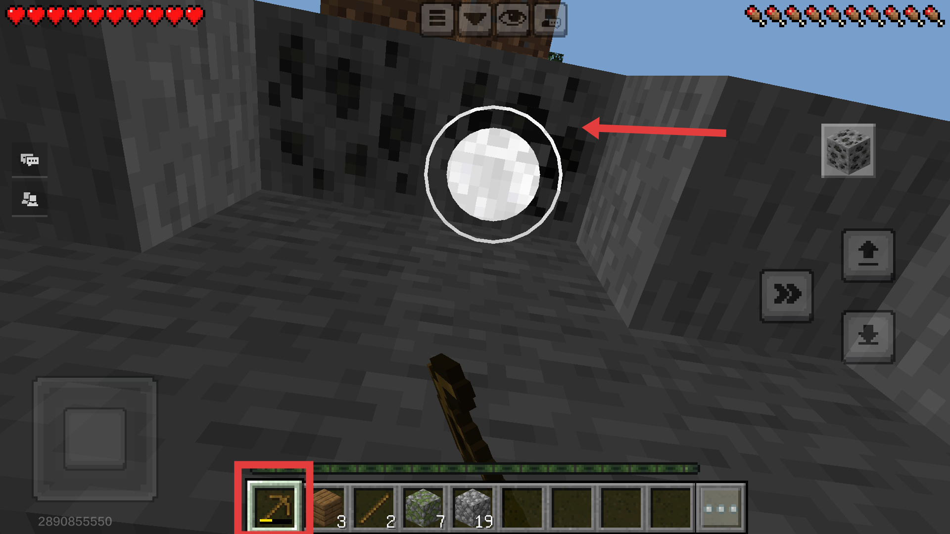 3、手持【木镐】对准石头猛挖,收集石块,建家挖矿都少不了,赶紧多挖点哦。