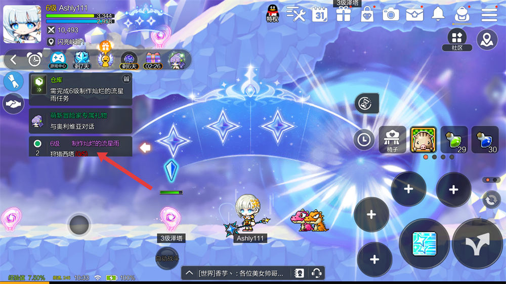 3、有了新装备加持,接取【制作灿烂的流星雨】任务,点击即可自动战斗,轻松狩猎怪物啦。