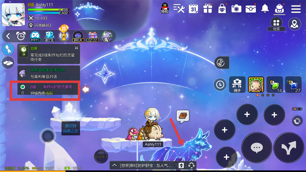 4、完成【制作灿烂的流星雨】任务要求后,与天狼对话领取奖励,解锁新内容继续冒险吧。