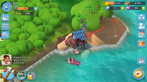 3.任务系统玩法多样,可以进行新岛屿的开发探索.攻占游戏玩家领地.每天刷特殊事件超级螃蟹获取大量海上物资
