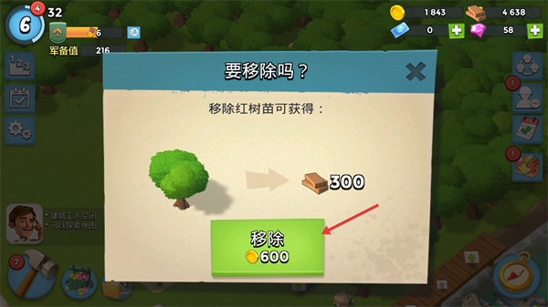 1、玩家可以通过移除周围树苗,获取木材。