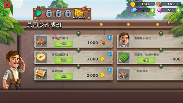 2、在【总司令速成班】,完成任务后点击【领取】,获取【木材】等奖励。