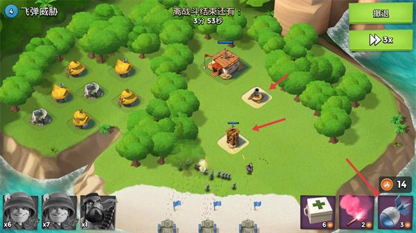 3、利用【飞弹】等道具,优先摧毁敌方炮台,推进部队进攻节奏。