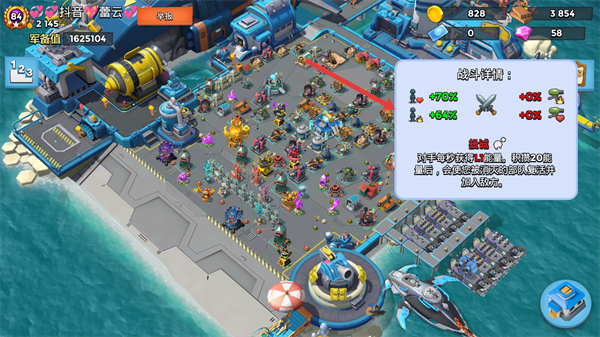 1.从这里便可看出,高血量的胖子兵种与高输出的MM可谓天生一对、郎才女貌、豺狼虎豹……厄,总之这两个兵种堪称绝配,并且是家司令部达到2级、5级便可解锁的两大前期兵种,无需配合太多支援舰的武器操作便可轻松平推掉前期大部分NPC、玩家的岛屿。