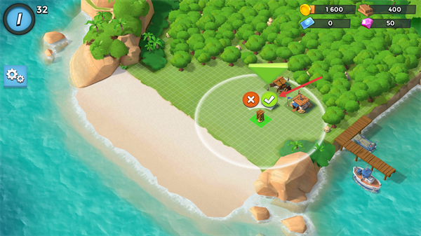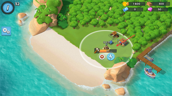 大家探索地图的时候会看到有资源岛,分别有木材,石头,铁矿3种,那么我们占有他以后,他就会为我们生产资源。过一段时间被搜索到就会有对手来抢夺哦,如果实在打不过。3天以后可以更换对手,当然你每进攻占岛都会升一级,里面就会提升防御等级和数量了。(资源岛的树木是可以铲除的…)