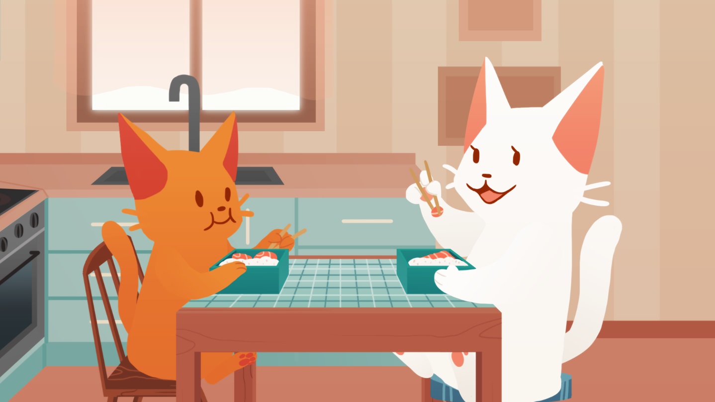 游戏采用了独特的手绘风格,猫咪和食物的设计都非常可爱,营造了愉悦的游戏氛围。
