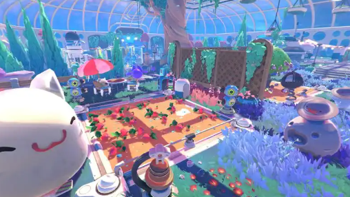 牧场模式:将无人机部署在保护区后,它们会自动执行预设任务,照料史莱姆、打理花园并清理环境;